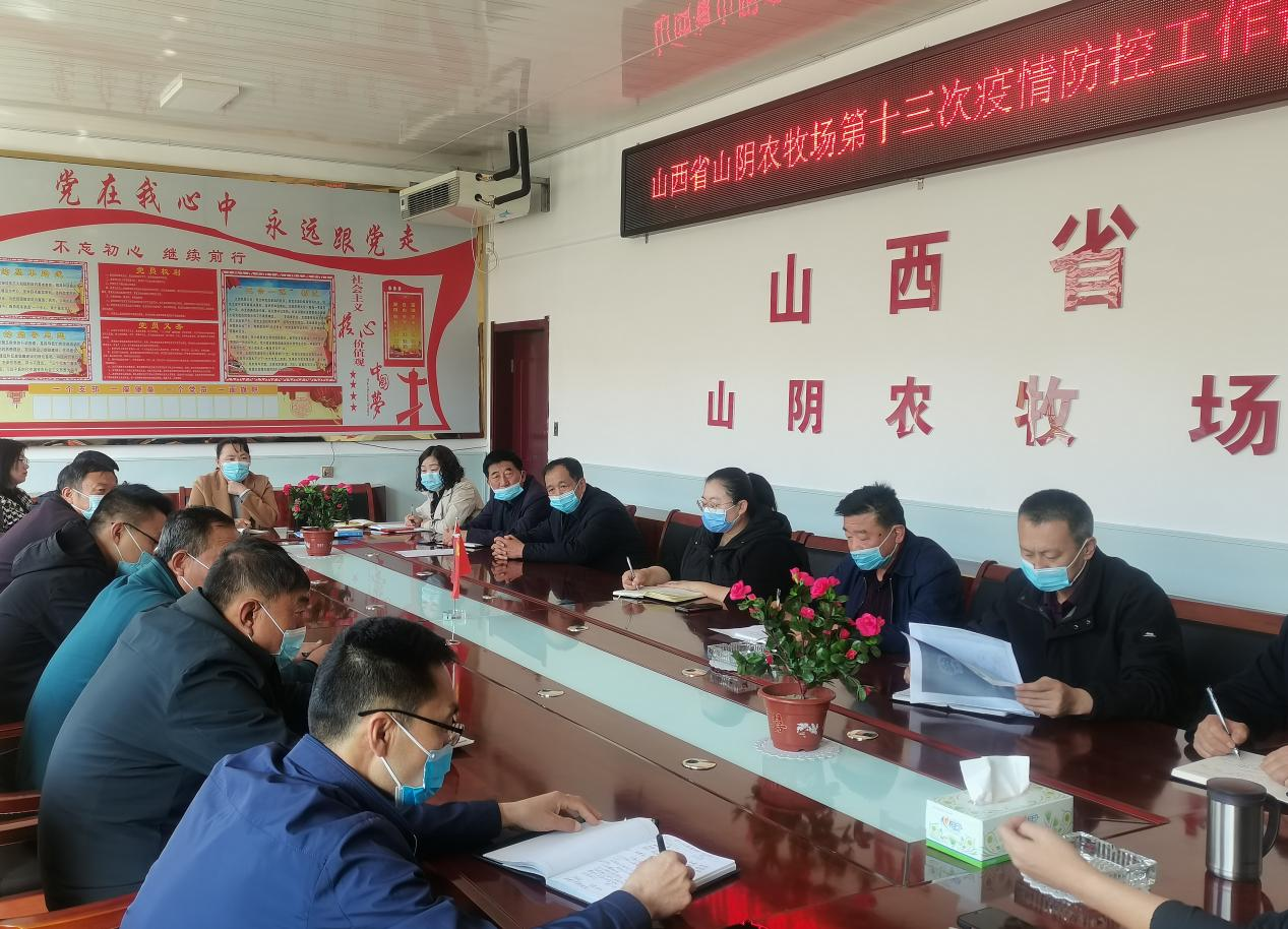 4月7日,山西省山阴农牧场召开第十三次疫情防控工作部署会议,场党委书记、场长冯成義主持会议并讲话,场.、机关各科室负责人、分场场长、下属公司负责人以及驻场企业负责人参加了会议。